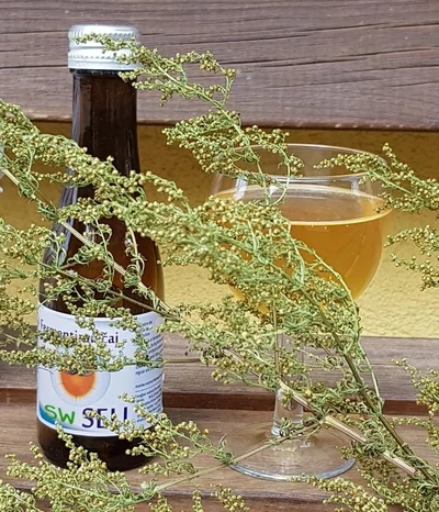 Sladki pelin smo vključili kot poskus za spremembo okusa lete 2015 in se je izkazal kot zelo dober substitut za beli čaj. Poleg značilnega okusa ima goba kombuče ob fermentaciji snežno belo barvo, zato to pijačo povezujemo z zimo.