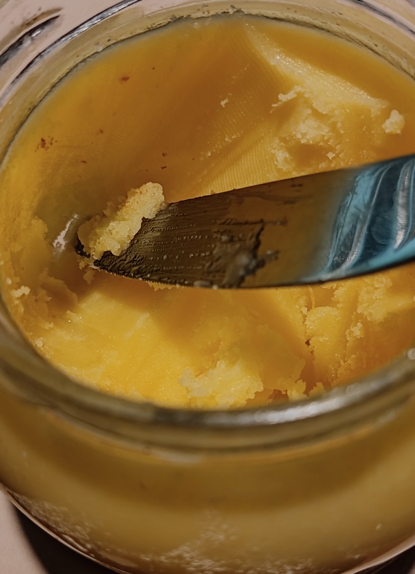 Ghee je prečiščeno maslo, ki se pridobiva s počasnim kuhanjem na nizki temperaturi. V procesu kuhanja se iz masla izločijo voda, mlečna laktoza in drugi mlečni dodatki, zato ta vrsta masla vsebuje bolj skoncentrirano maščobo. Posebnost našega prečiščenega masla je, da je to od ene ali dveh krav, kjer se okusi voj cvetočega travnika.